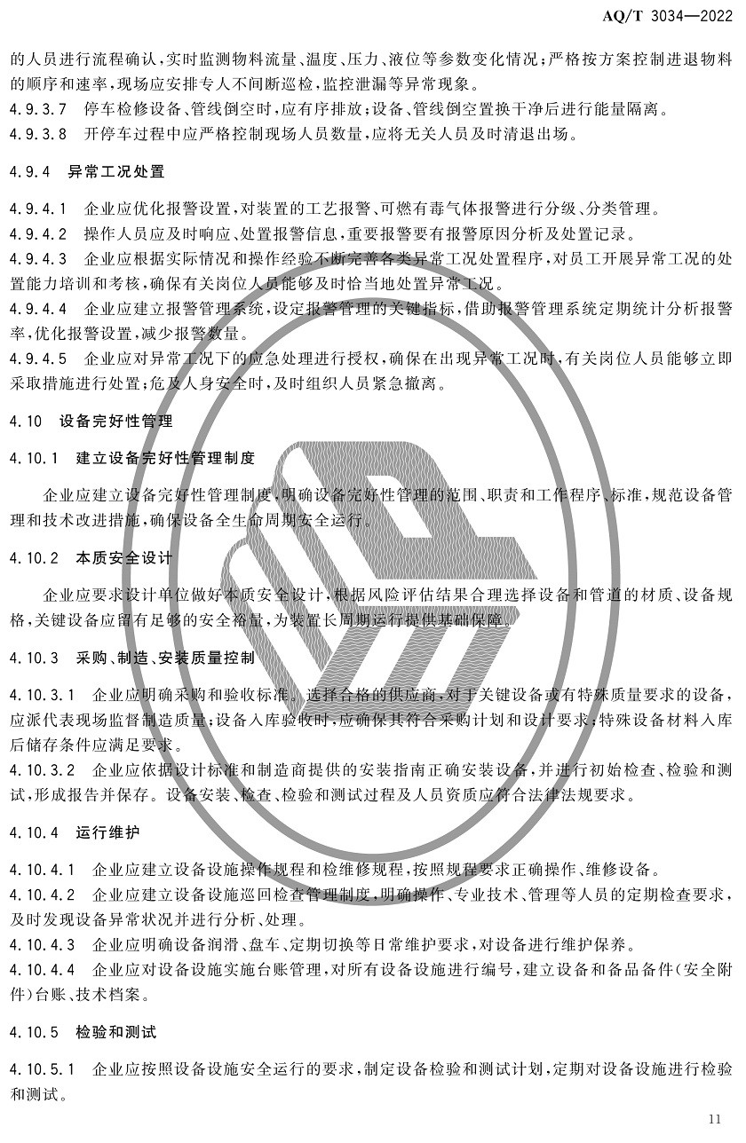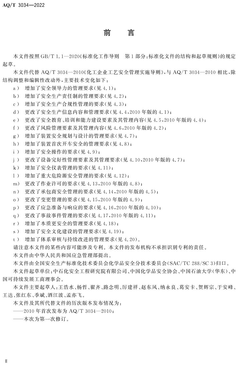 中華人民共和國安全生產(chǎn)行業(yè)標(biāo)準(zhǔn)|AQT3034-2022化工過程安全管理導(dǎo)則全文
