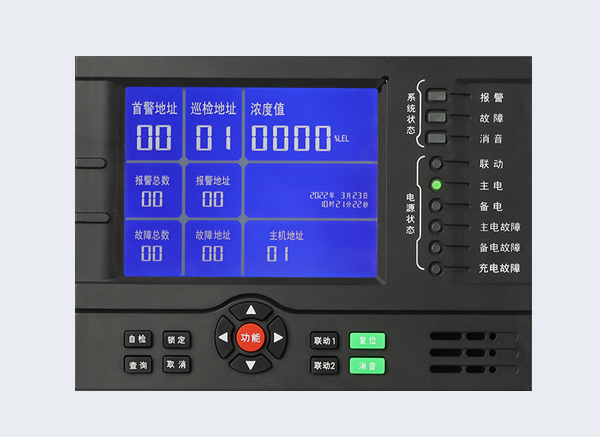 SSK-ZL-60N型氣體報(bào)警控制器通過(guò)查詢(xún)方式獲得探測(cè)器信息,經(jīng)高速CPU數(shù)據(jù)處理,通過(guò)LCD顯示出探測(cè)器相應(yīng)的濃度、狀態(tài)并輸出相應(yīng)的控制器信號(hào)。