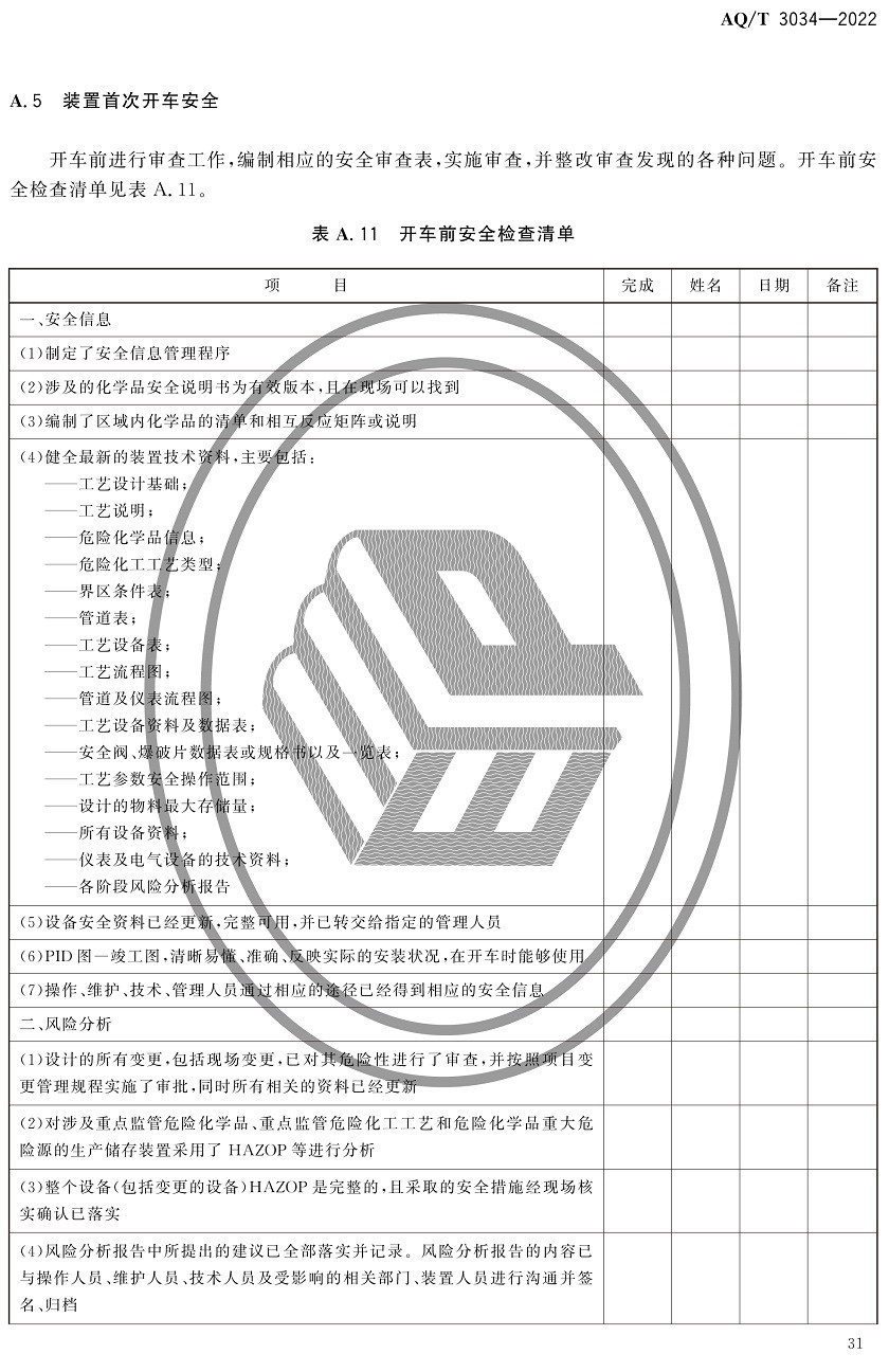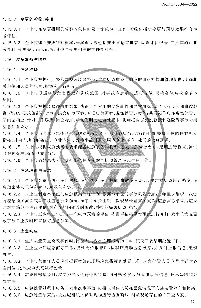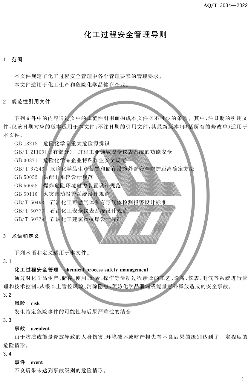 中華人民共和國安全生產(chǎn)行業(yè)標(biāo)準(zhǔn)|AQT3034-2022化工過程安全管理導(dǎo)則全文