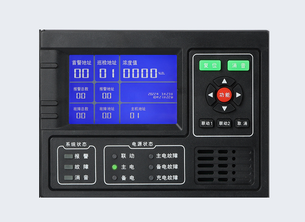 控制器通過查詢方式獲得探測器信息,經(jīng)高速CPU數(shù)據(jù)處理,通過LCD顯示出探測器相應(yīng)的濃度、狀態(tài)并輸出相應(yīng)的控制器信號。